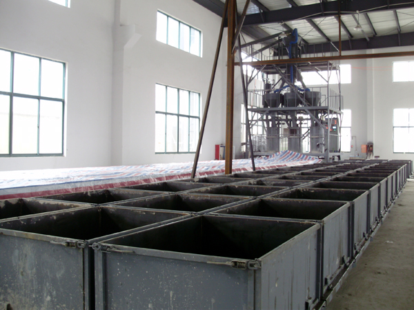 该生产线是生产发泡水泥保温板的专用设备,从配料到放料采用微电脑控制,计量精确、自动化程度高,每5-6分钟就出一批,产量高,耗能少,目前已广泛应用并得到客户的认可。