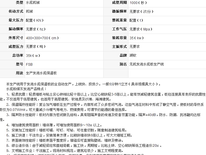 产品名称:发泡水泥保温板生产线